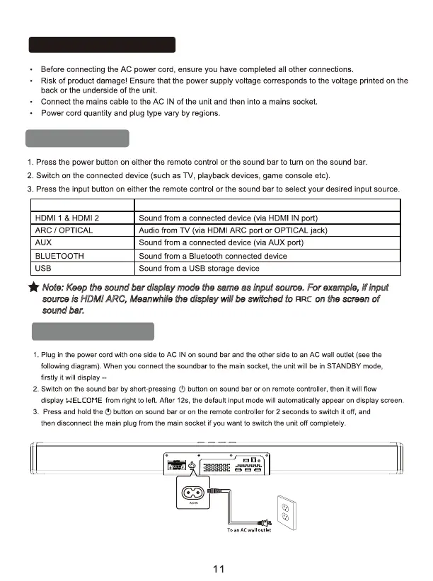 Note: Keep the sound bar display mode the same as input source. For example, if input