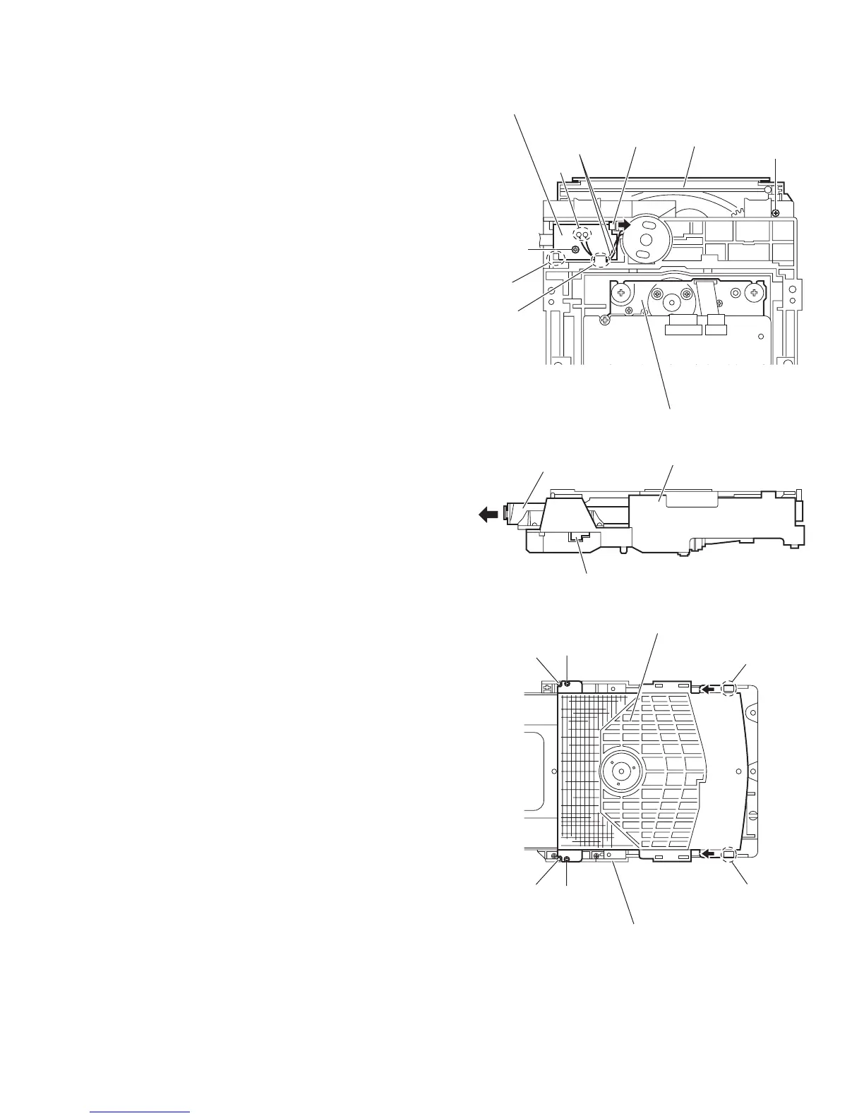 (1) From the bottom side of the DVD mechanism assembly, re-