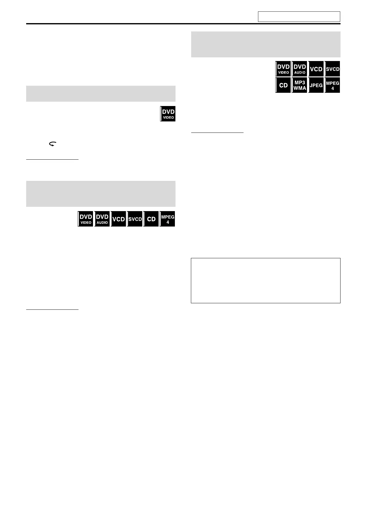 • When a DVD VIDEO, VCD, SVCD, or MPEG4 disc is played back,