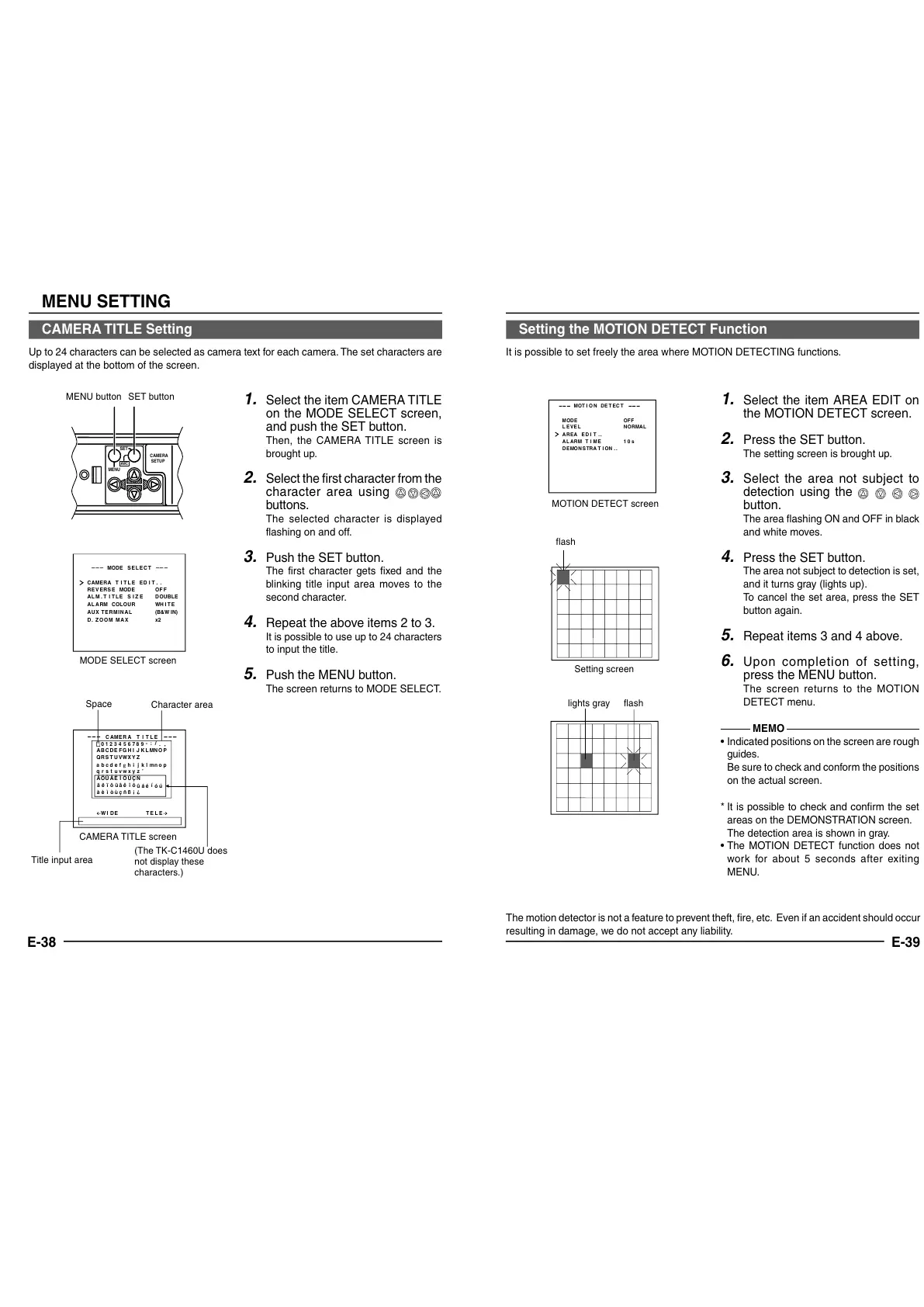 • The MOTION DETECT function does not