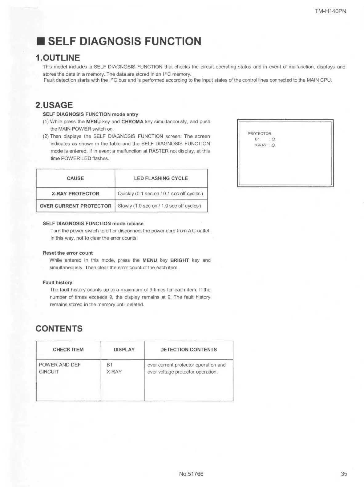indicates as shown in the table and the SELF DIAGNOSIS FUNCTION