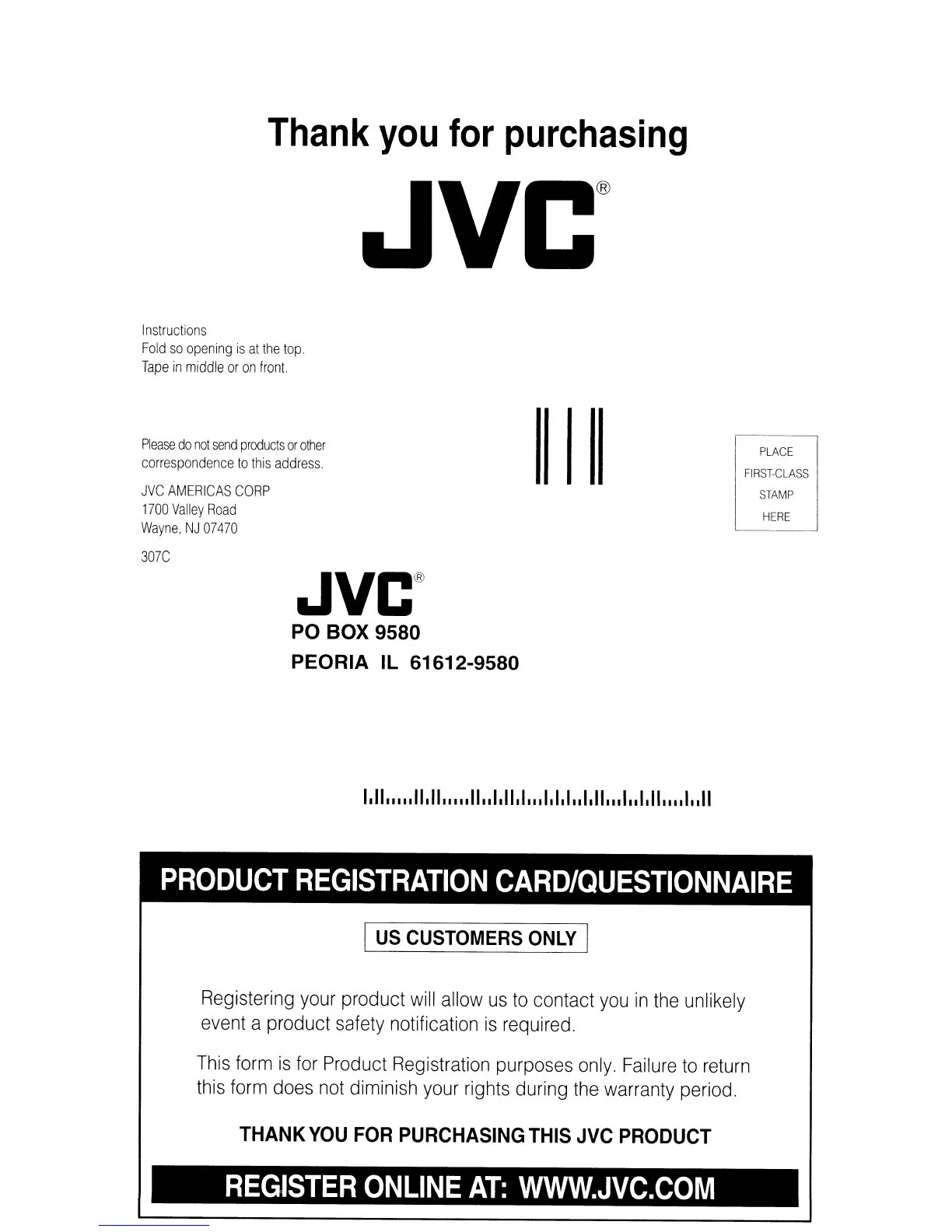 JVC UX-GP5 - Product Registration Information; Product Registration Card;Questionnaire