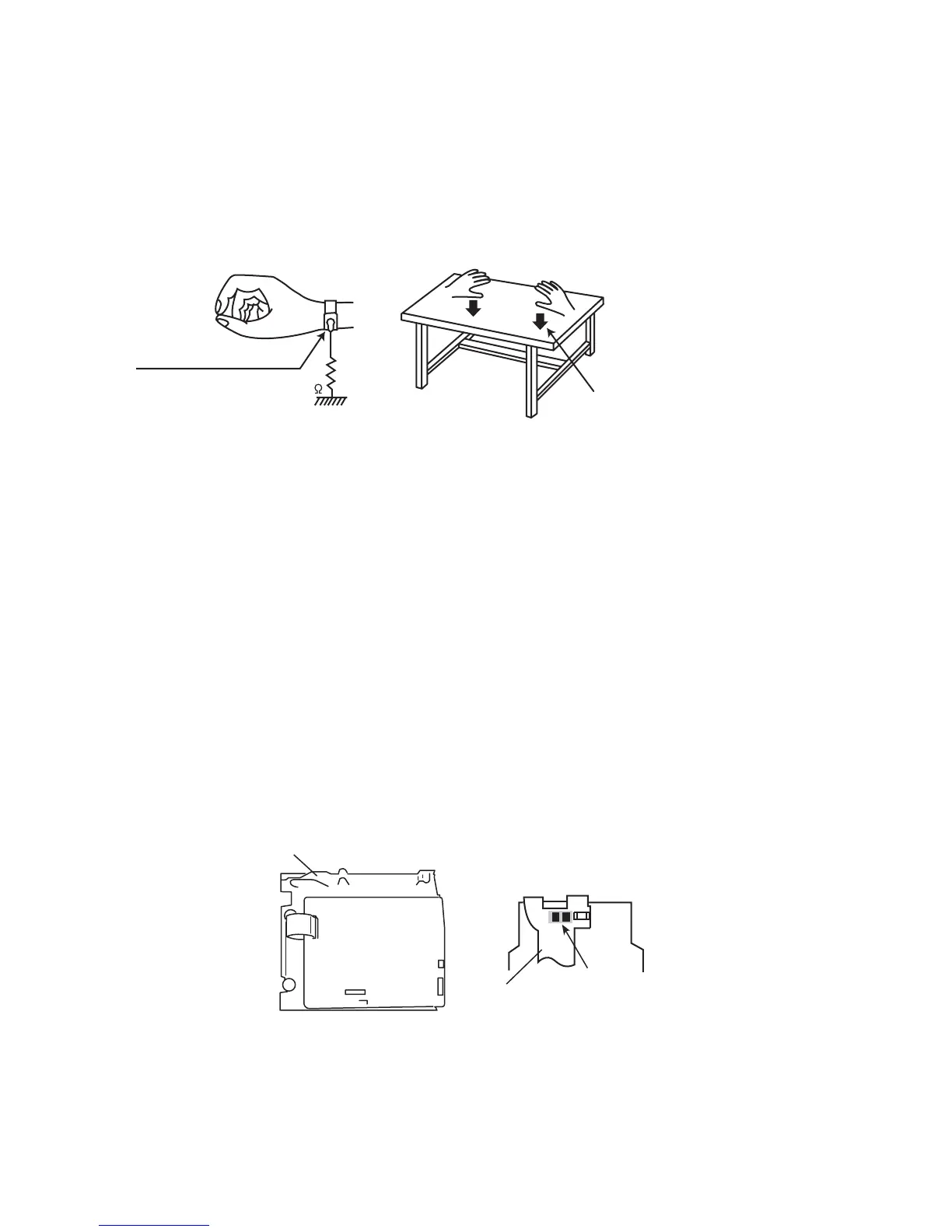 Static electricity in the work area can destroy the optical pickup (laser diode) in devices such as laser products.
