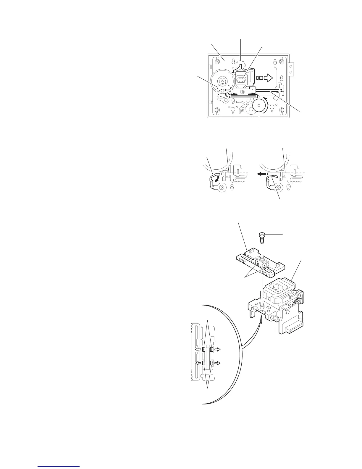 (1) From top of the CD tramecha assembly, turn the cam gear