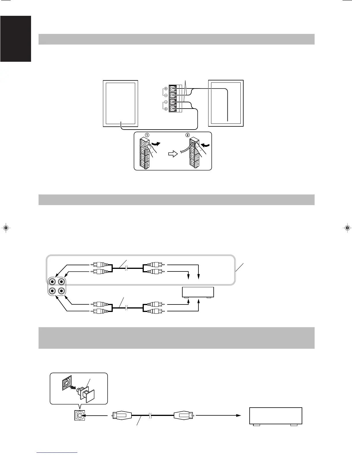 Unplug the cap and connect an optical digital cord (not supplied) between the System’s OPTICAL DIGITAL OUT terminal and the input