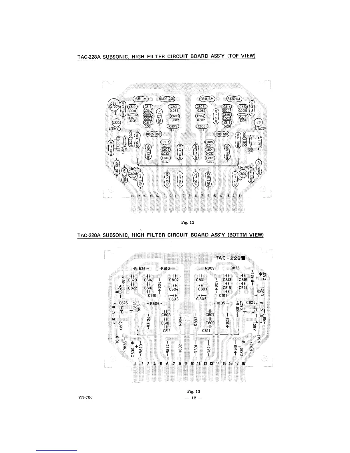 JVC VN-700 - Subsonic and High Filter Circuit Board (TAC-228 A) Diagrams; Top View Diagram; Bottom View Diagram