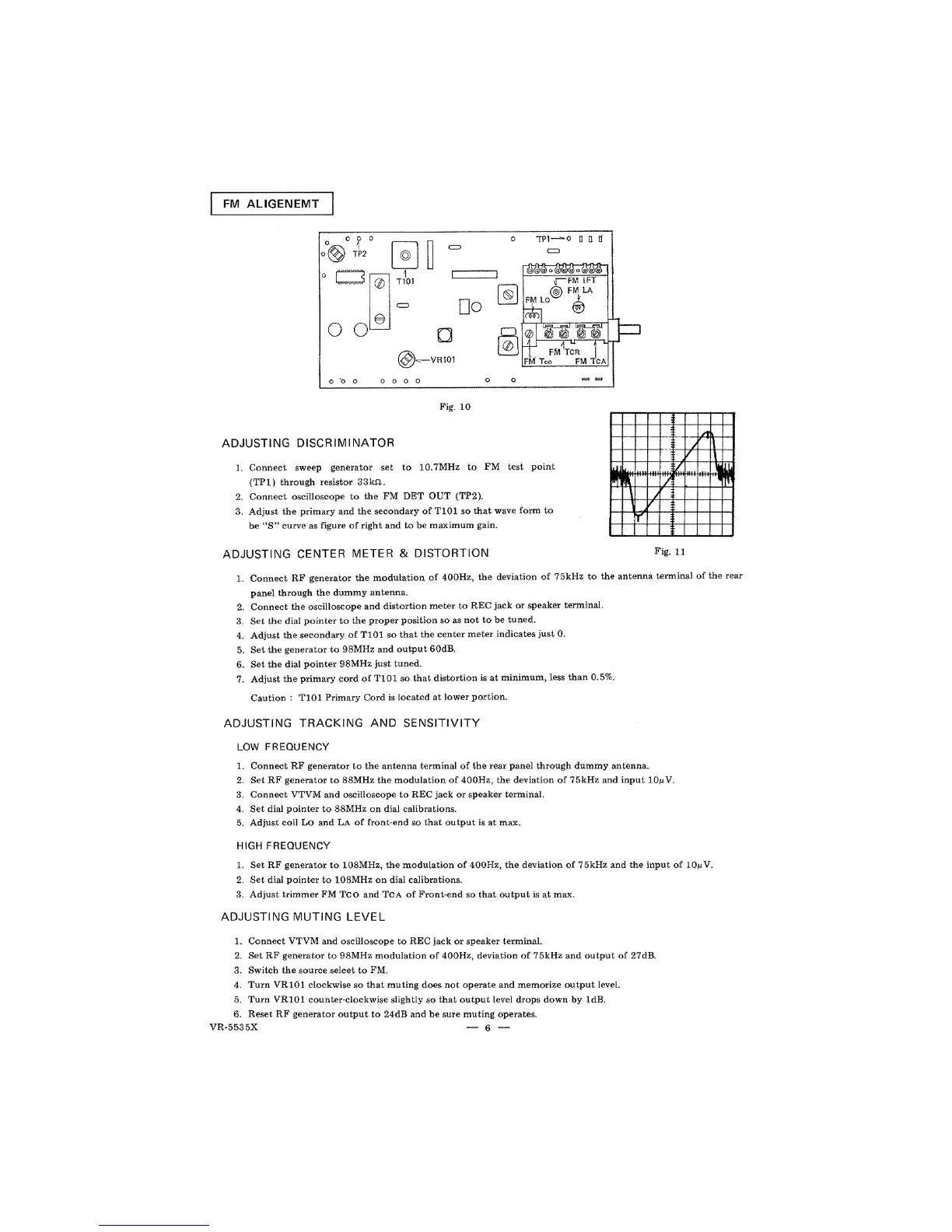 JVC VR-5535X - FM TUNER ALIGNMENT; FM ALIGENEMT; ADJUSTING DISCRIMINATOR; ADJUSTING CENTER METER & DISTORTION