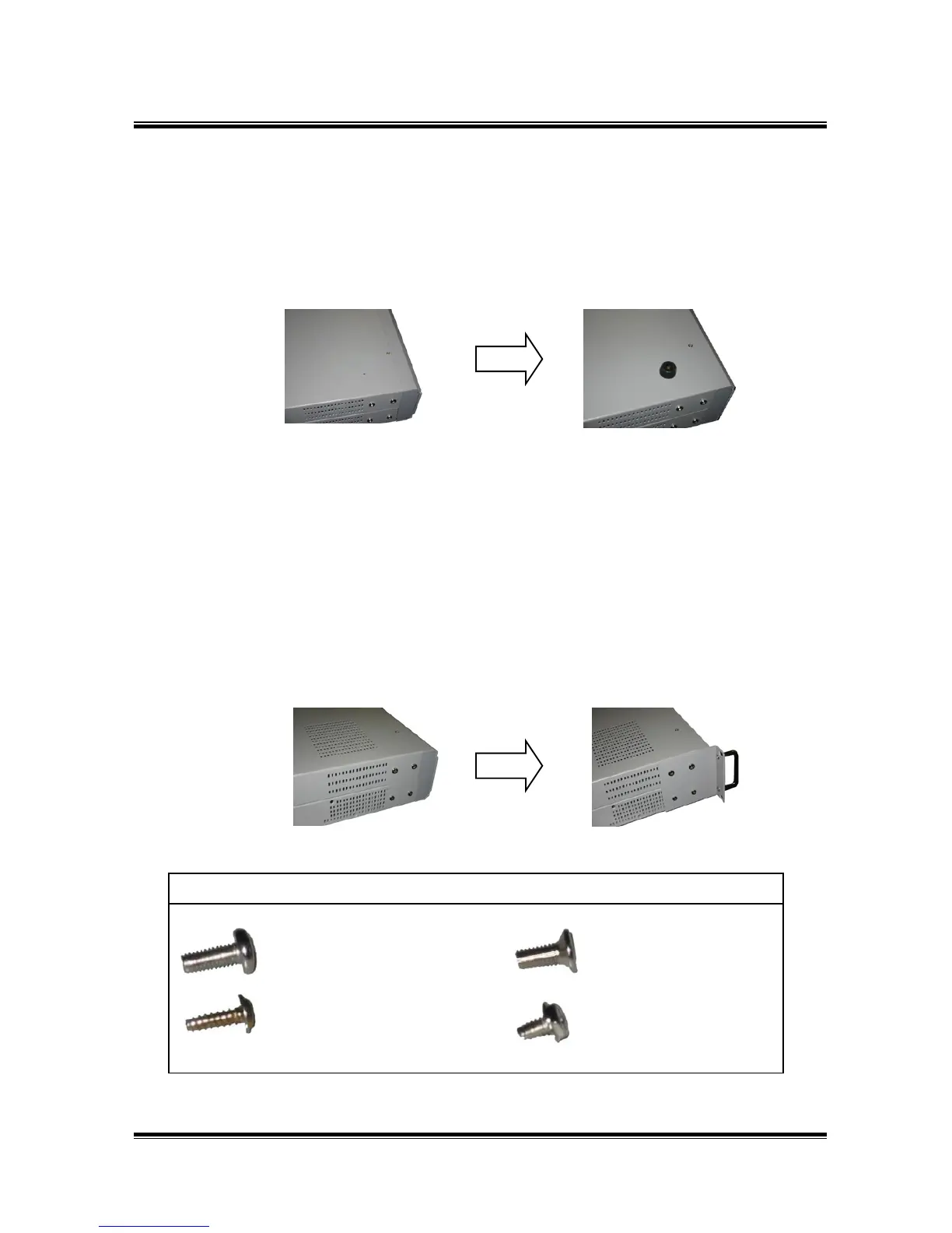 - Attach 4 rubber feet in the bottom surface of the equipment with 4 screws provided (M3 x