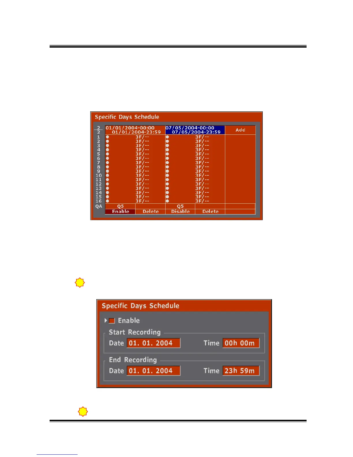 ‘Add’, you can add and configure new “Specific Day Schedule” up to 16.