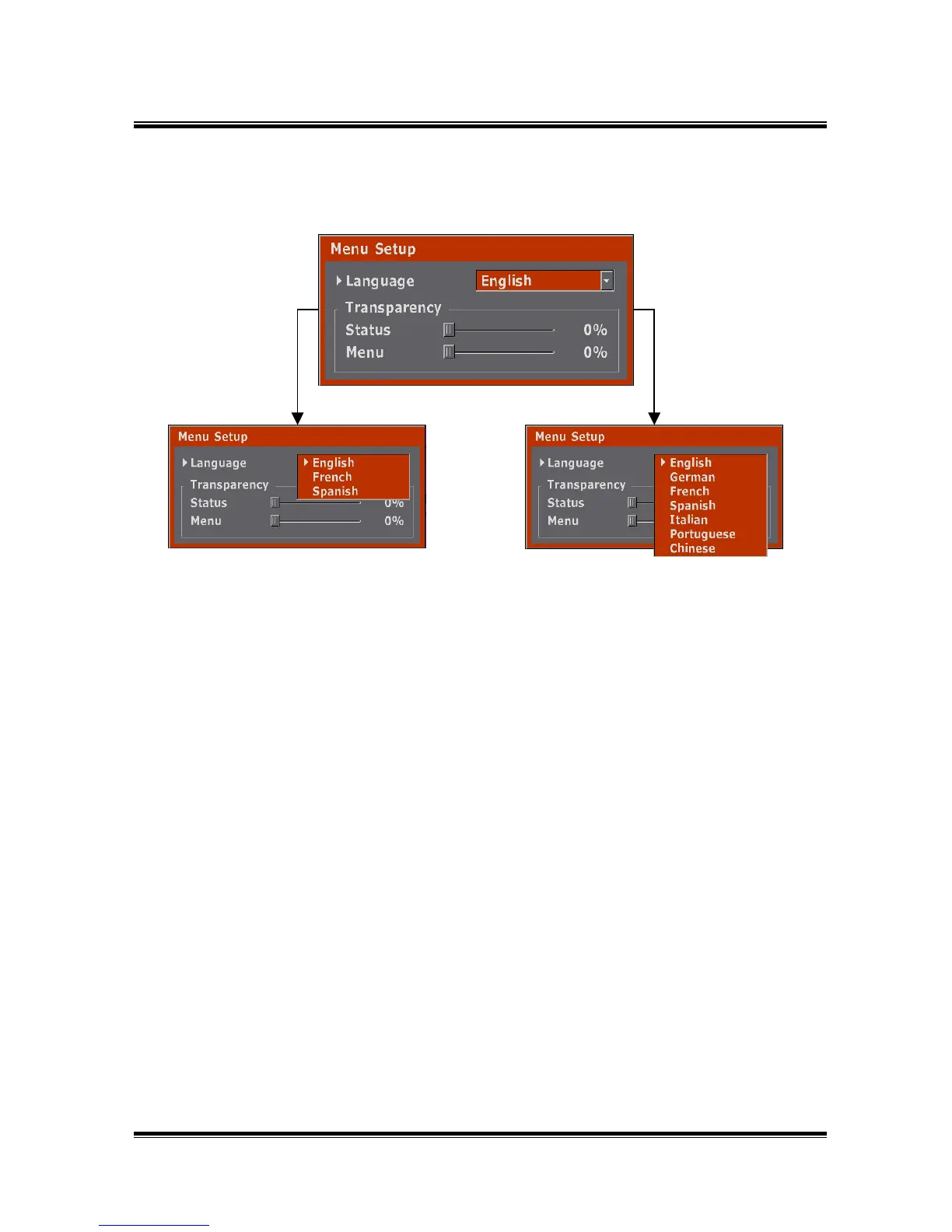 1) Selecting Menu Setup from the menu, displays the above picture.