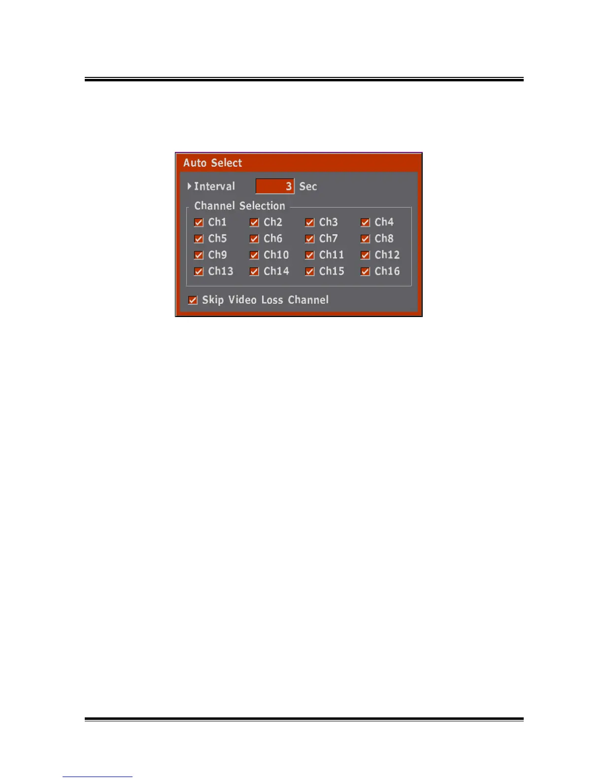 4) When select Skip Video Loss Channel, no signal channel is notdisplayed