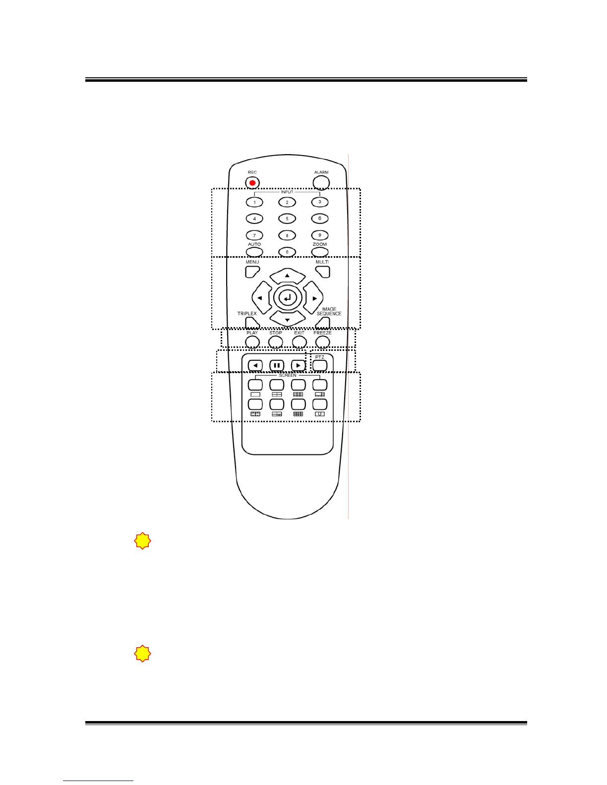 1) Press one of INPUT button (1~9) and STOP on DVR at the same time then