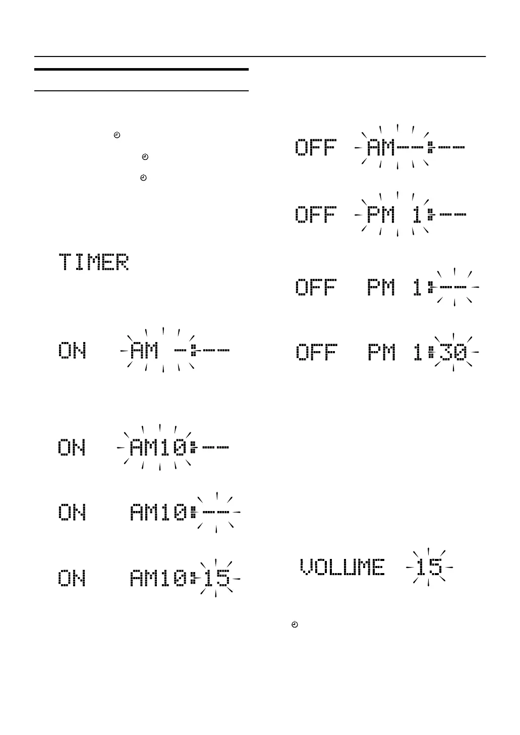 Setting the ON time (Example: AM 10:15).