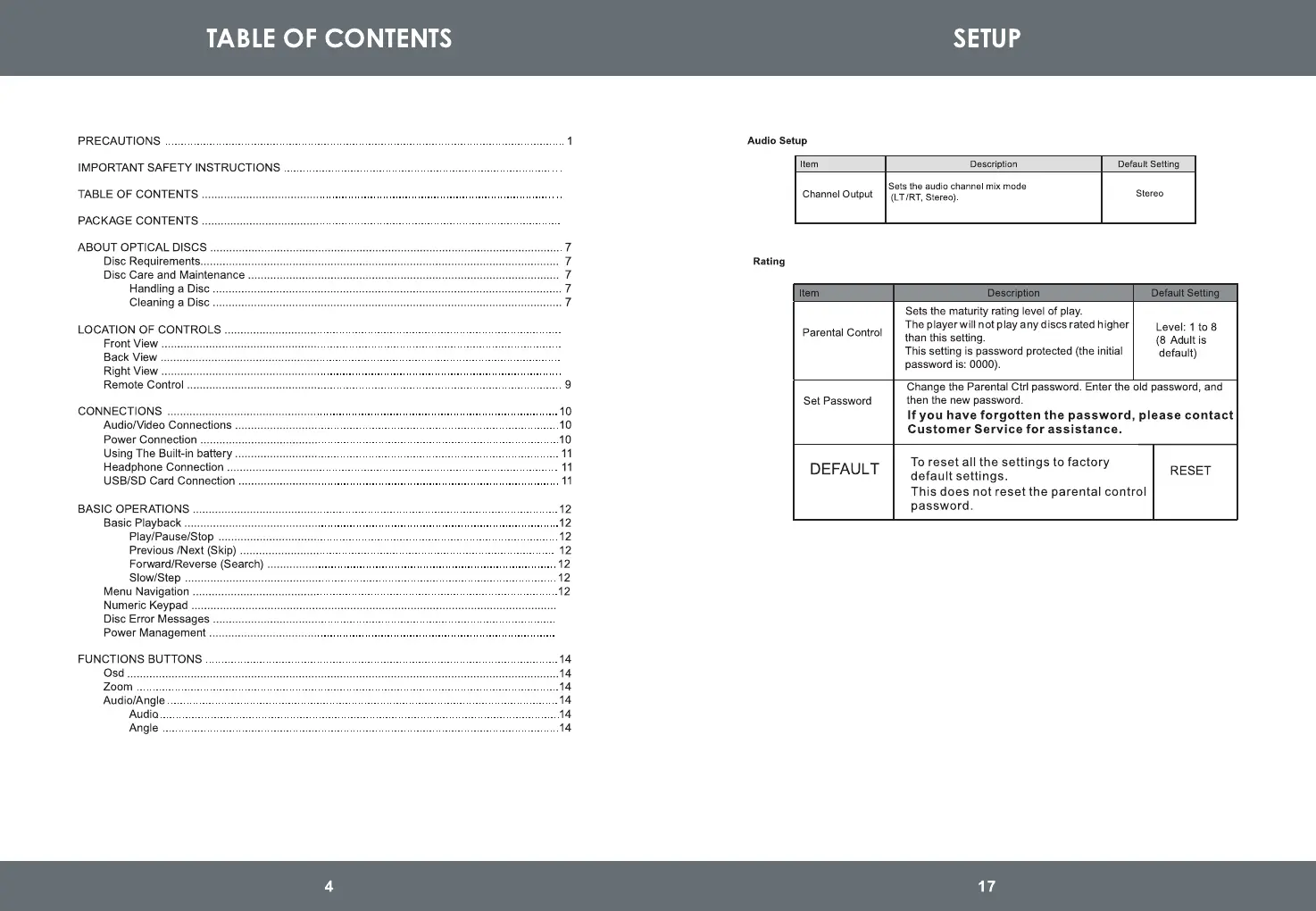 JVC XV-PY1000A - Setup Configuration; Audio Configuration Options; Parental Control and Rating Settings