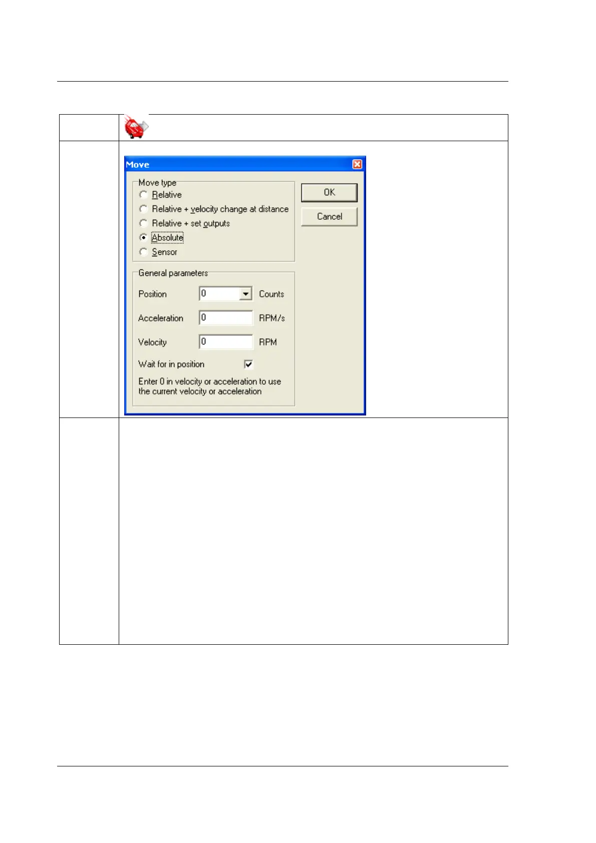 overwritten with this velocity value. Also, if you specify an acceleration, motor