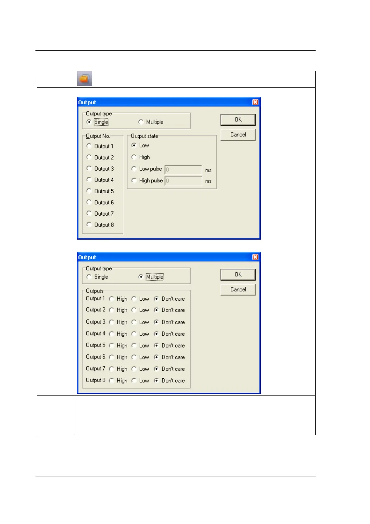 Function: Sets one or more outputs. When setting a single output, you can set it to high,