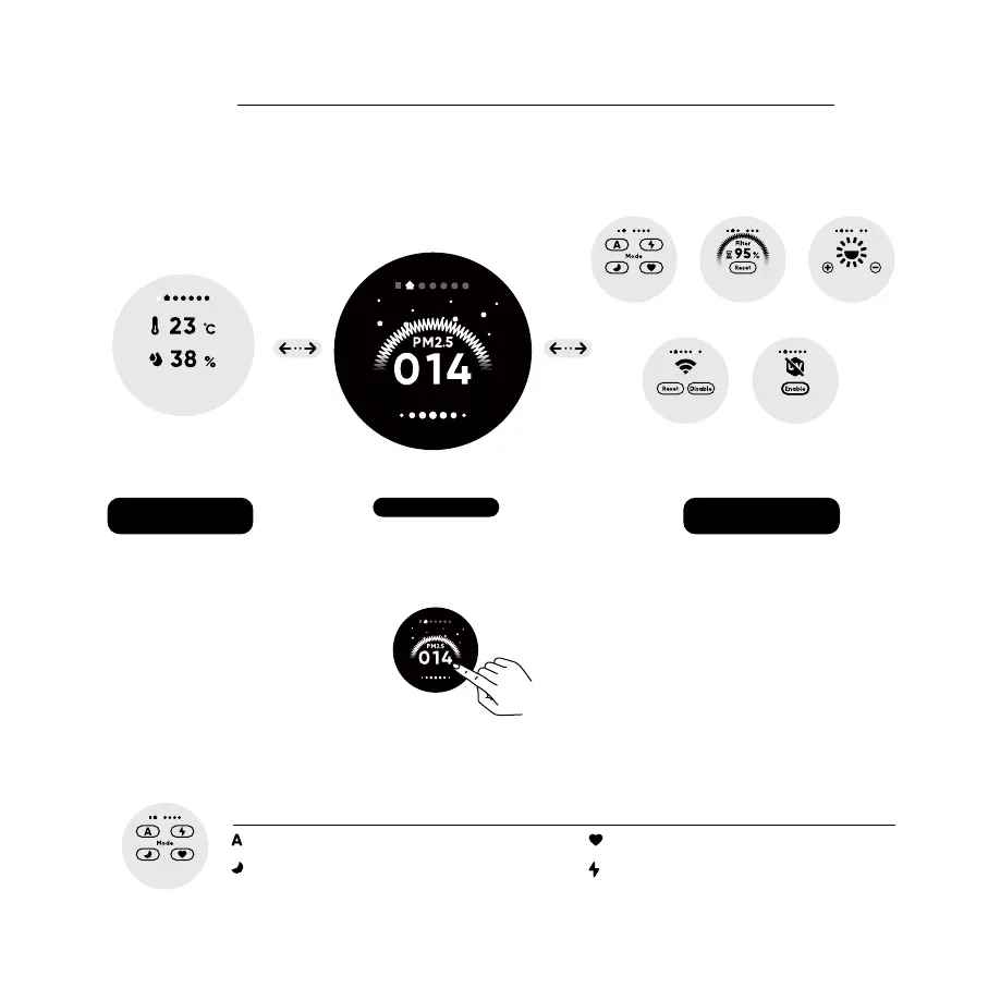 En la "interfaz de selección de modo", el botón del modo actual mantiene iluminado , haga clic para
