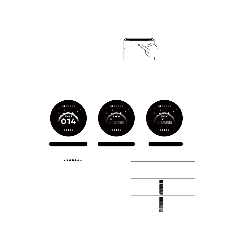 Nach dem Einschalten werden auf der Hauptschnittstelle abwechselnd PM 2,5-, TVOC- und PM
