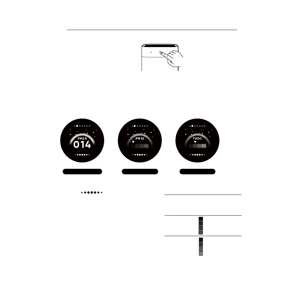 Po uruchomieniu ekran główny będzie się obracał na zmianę w interfejsie PM 2.5, CLZO oraz PM 10