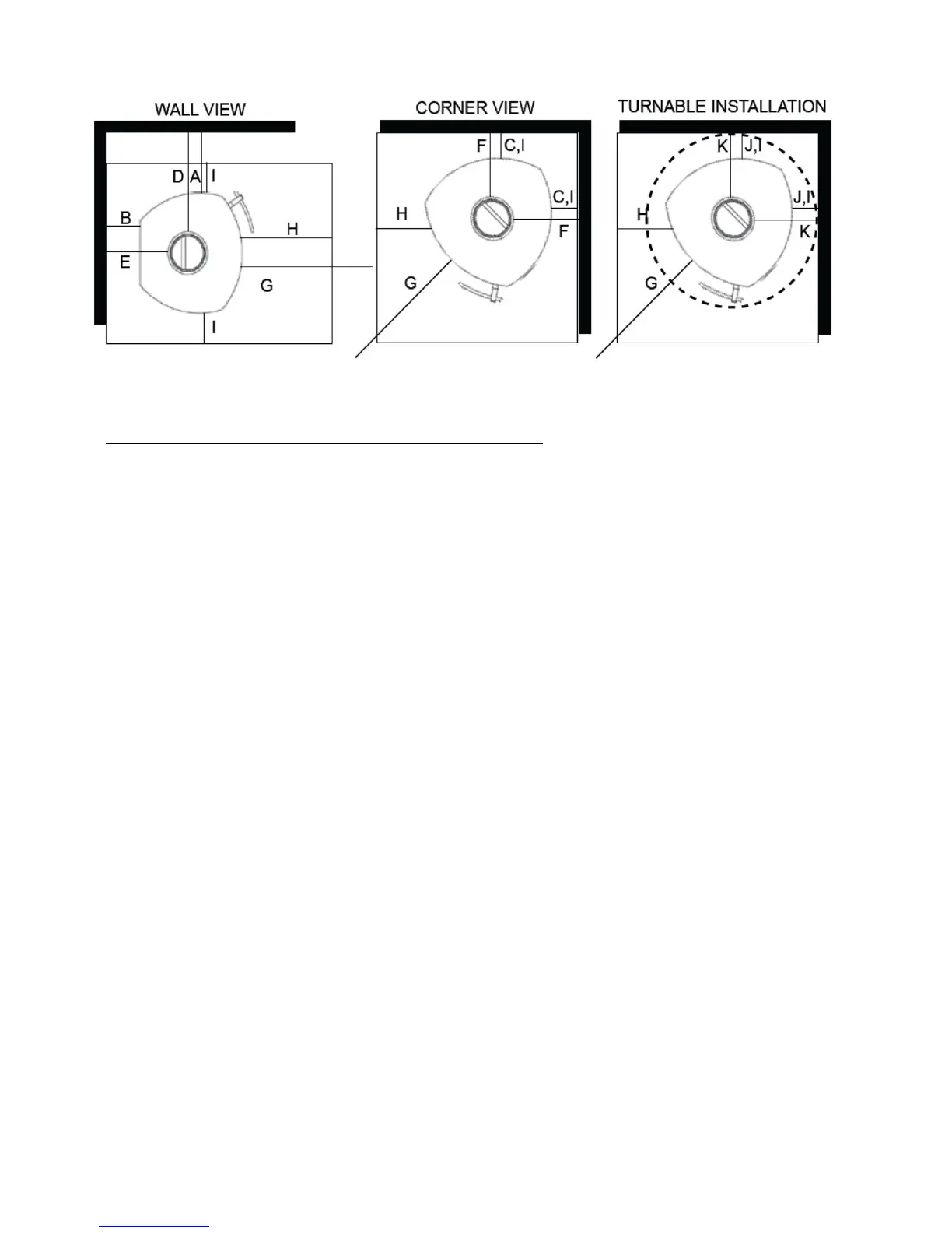 J. DISTANCE TO WALL (TURNABLE) US/CANADA 40" (100 cm)