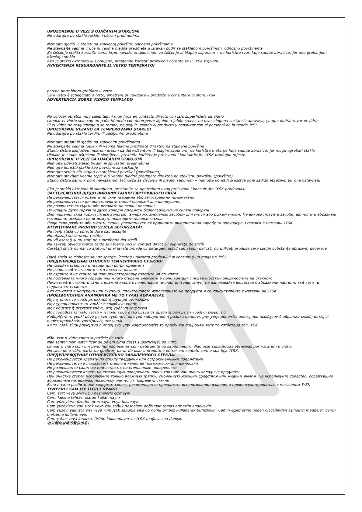 如果玻璃有裂纹或有损坏,请停止使用该产品并咨询 JYSK 商店