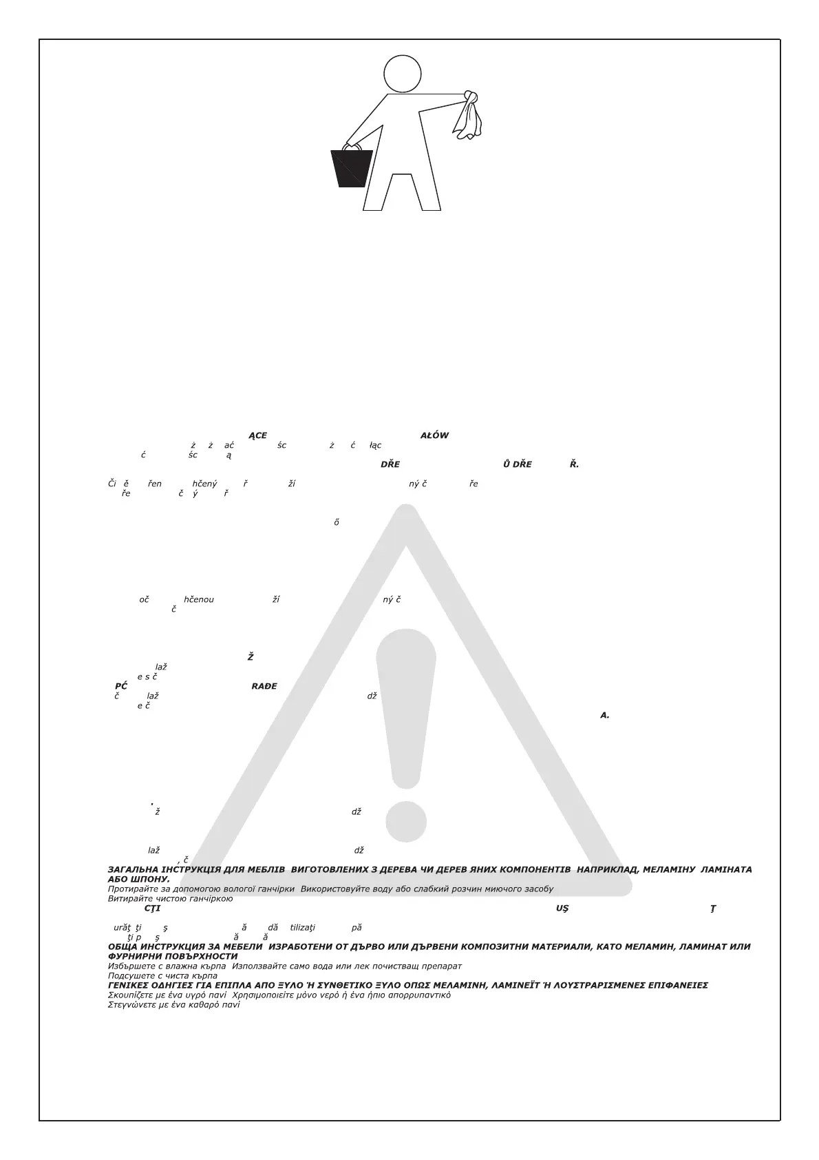 GENERAL INSTRUCTION FOR FURNITURE MADE OF WOOD OR WOOD COMPOSITES SUCH AS MELAMINE, LAMINATE OR VENEER SURFACES!