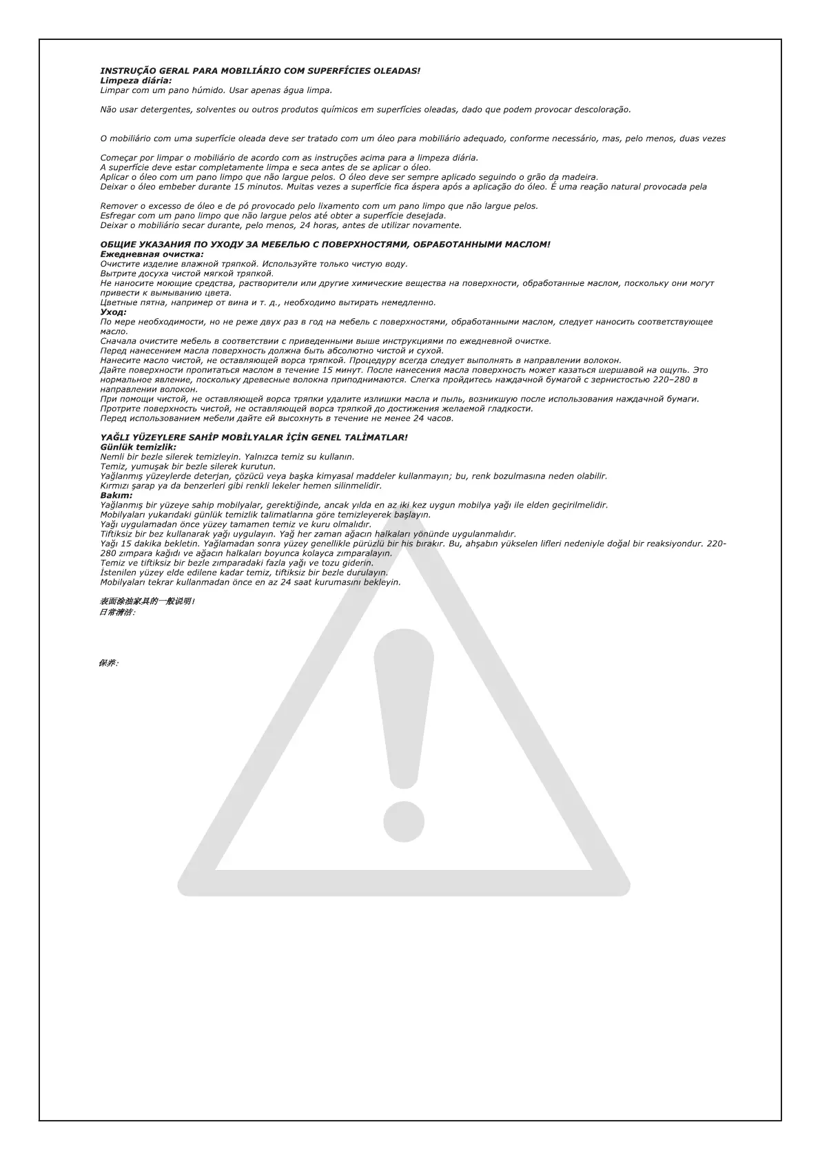 表面涂油家具的一般说明!