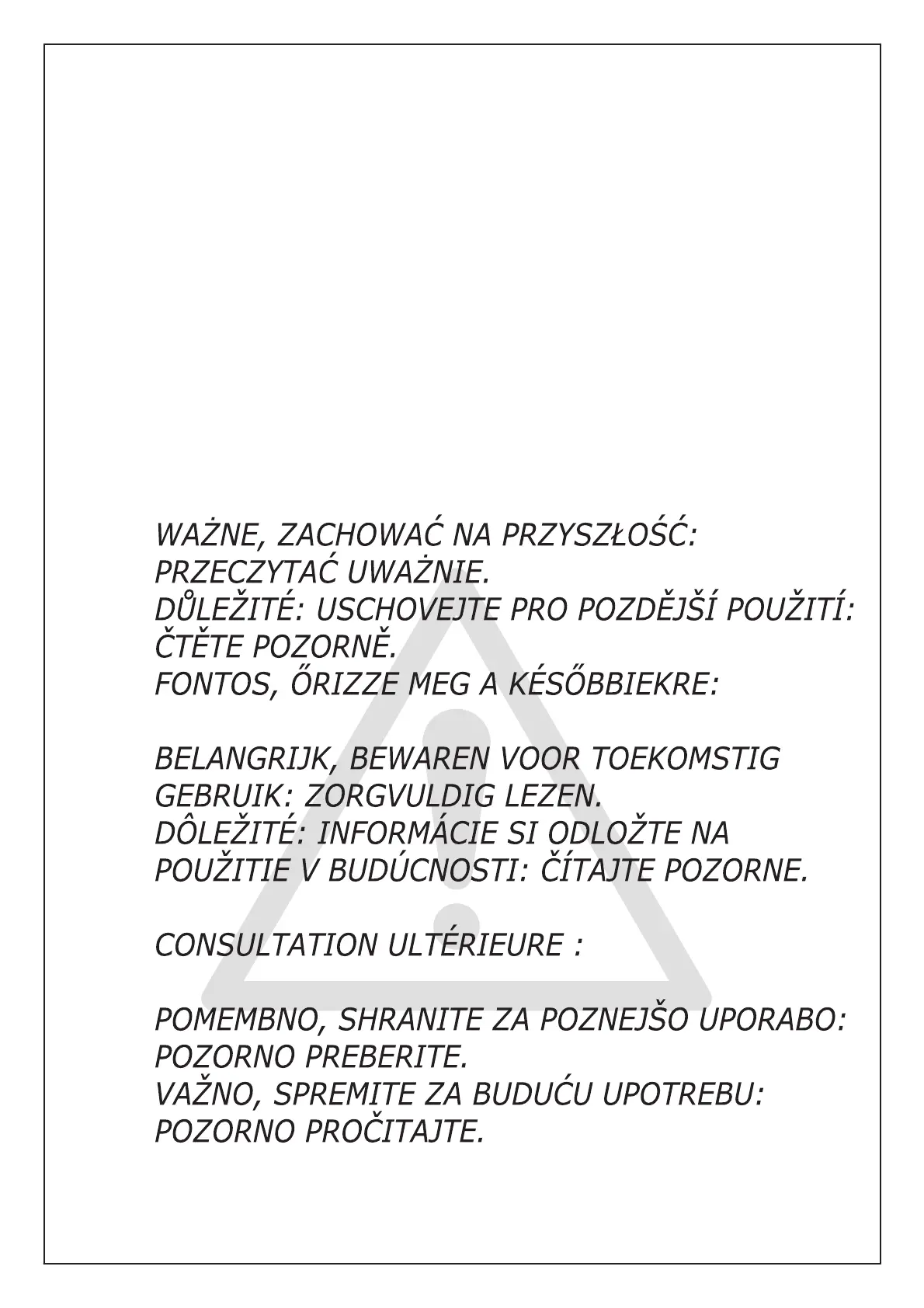 IMPORTANT, À CONSERVER POUR TOUTE