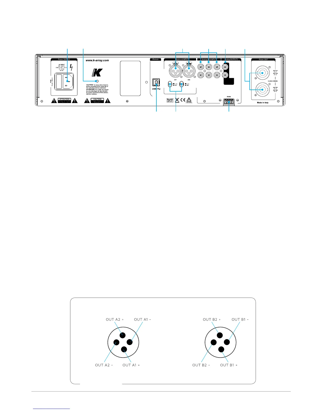 7. POWER OUTPUTS. Speakon NL4 outputs to drive passive speakers (see wiring diagram below).