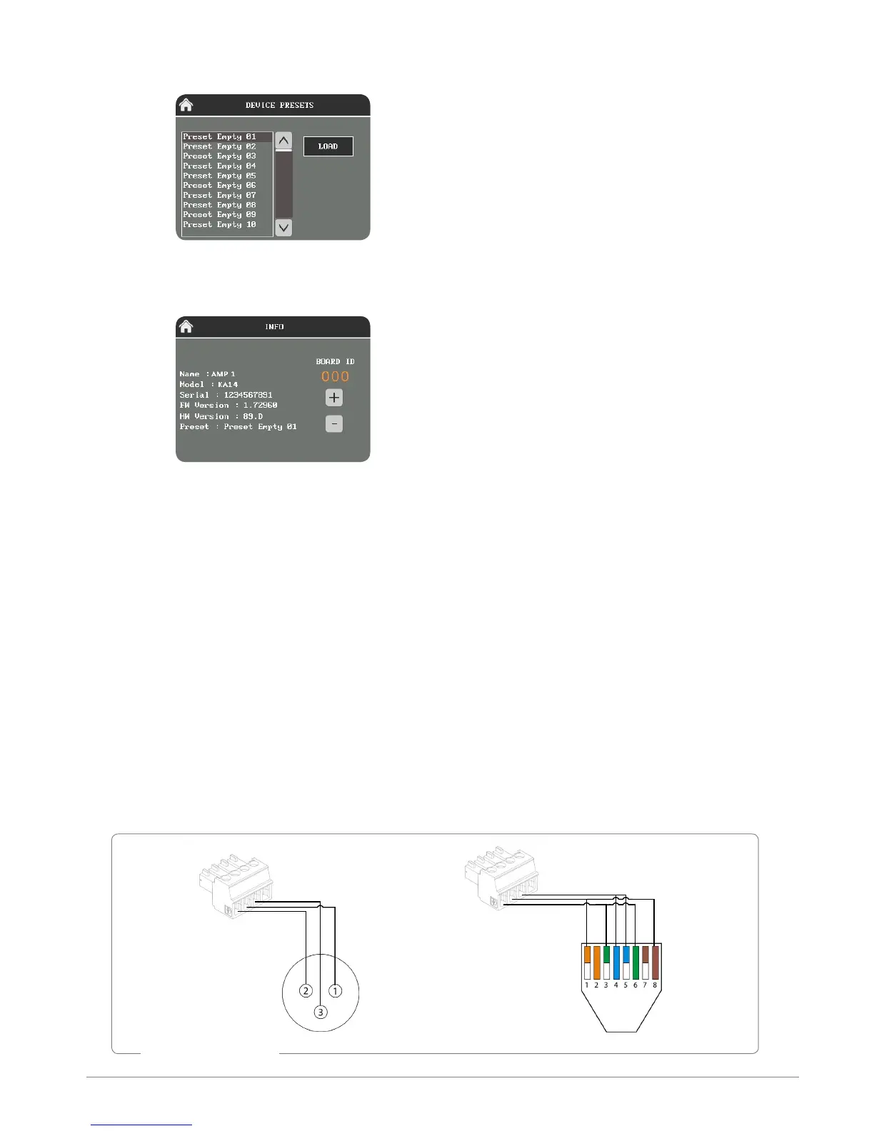 The amplifier features also 4-pins phoenix connector, for remote control of the amplifier via RS485