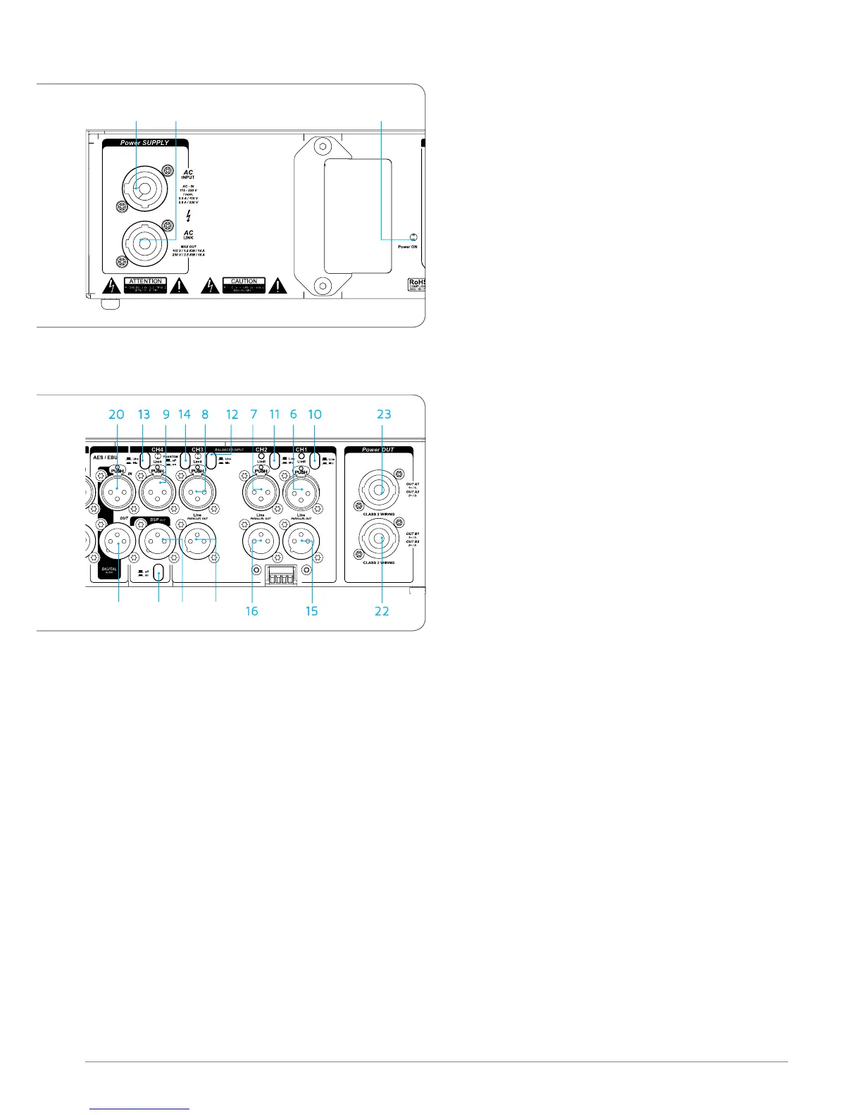 4. AC LINK. PowerCon ouput for feeding AC mains