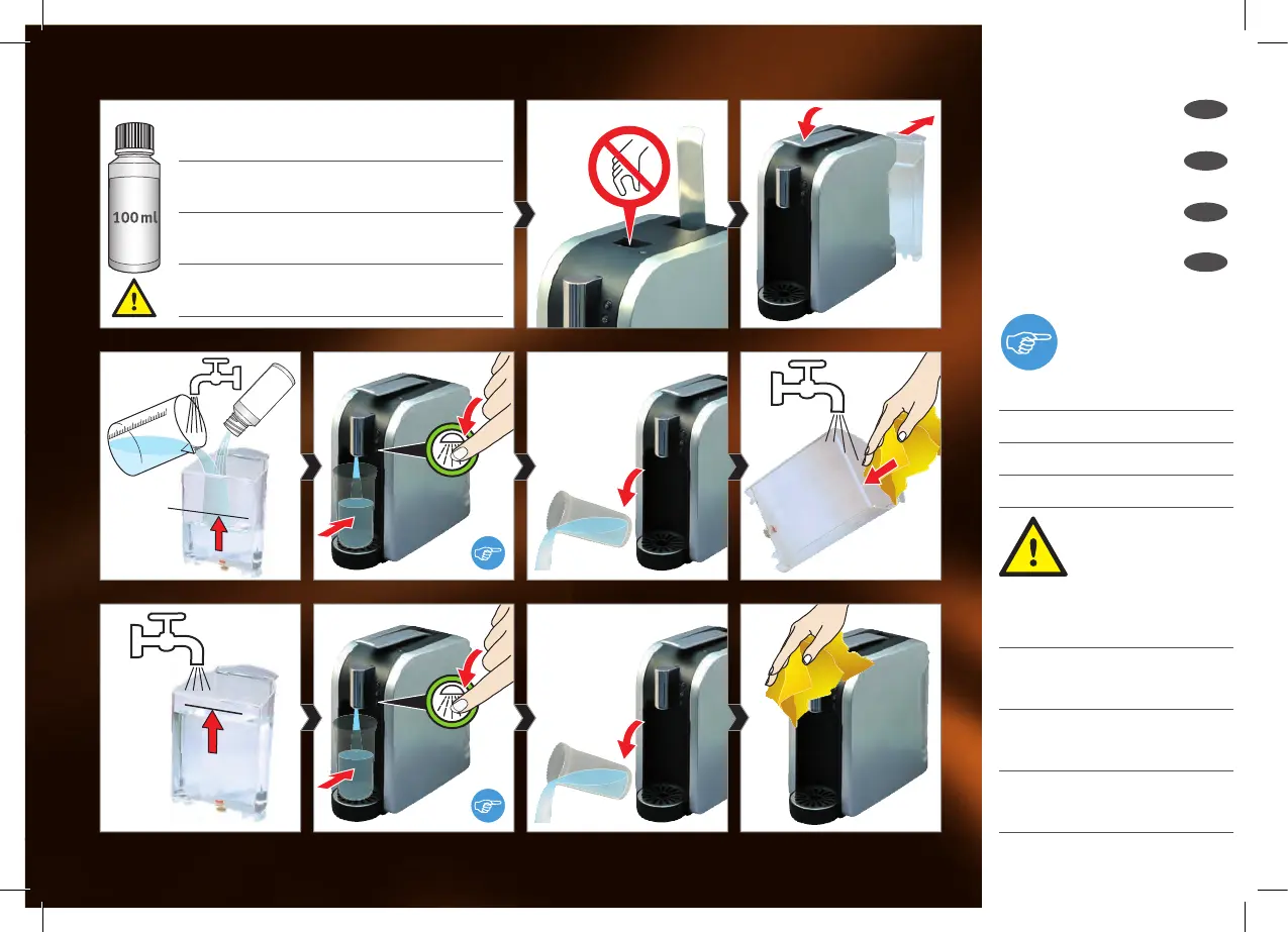 Rinse until the water tank is com-