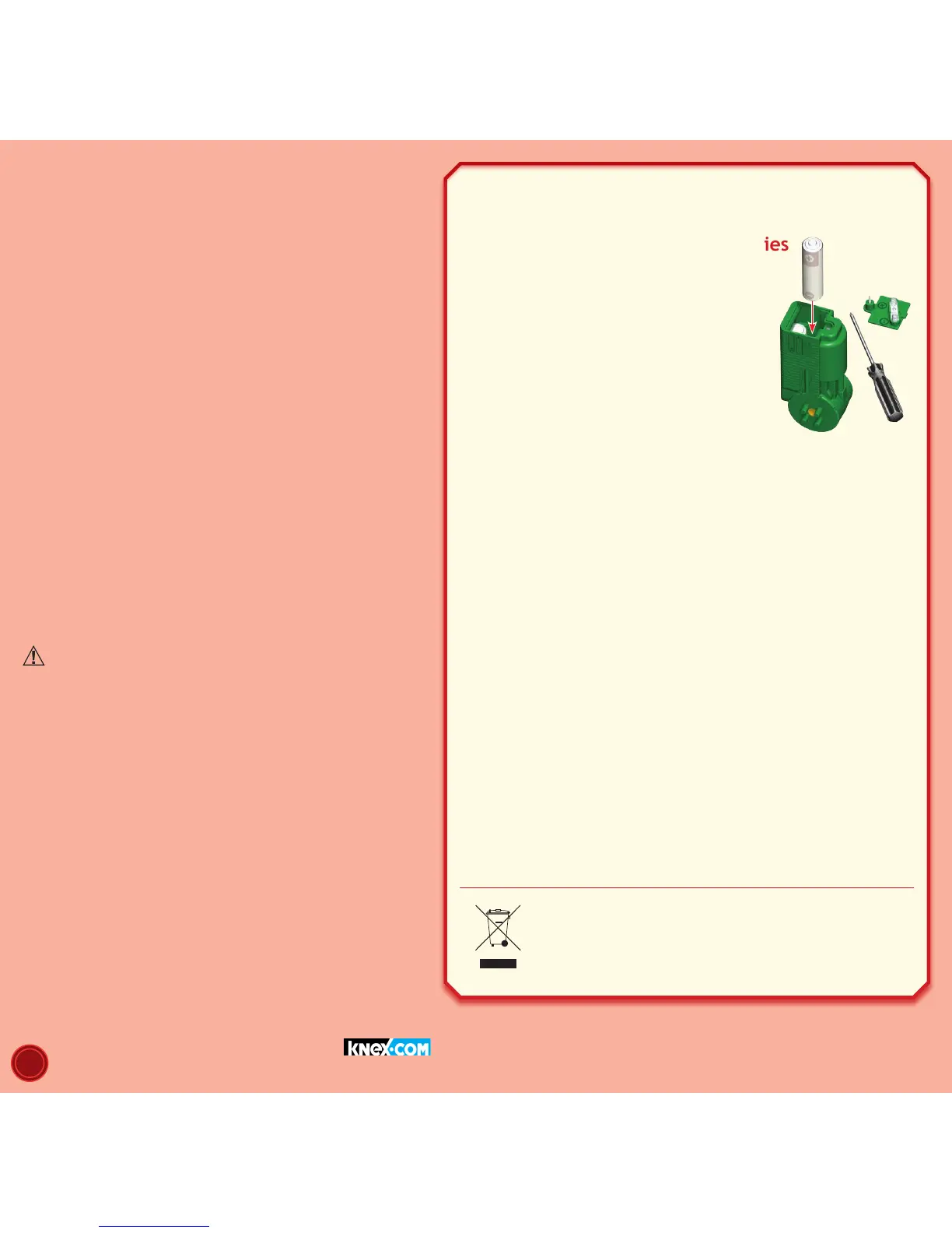• Do not dispose of batteries in a re; they could leak or explode