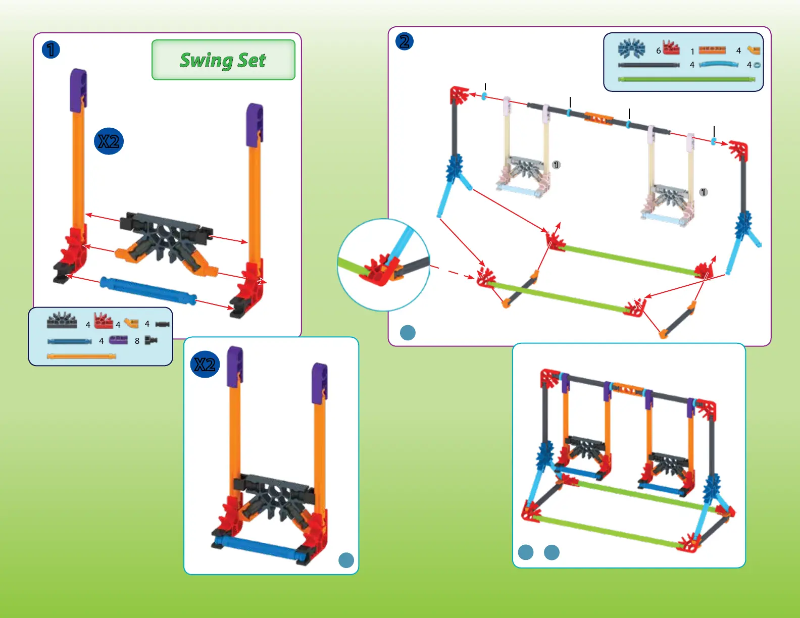 K'Nex 60 MODEL SET - Swing Set; Step 1; Step 2