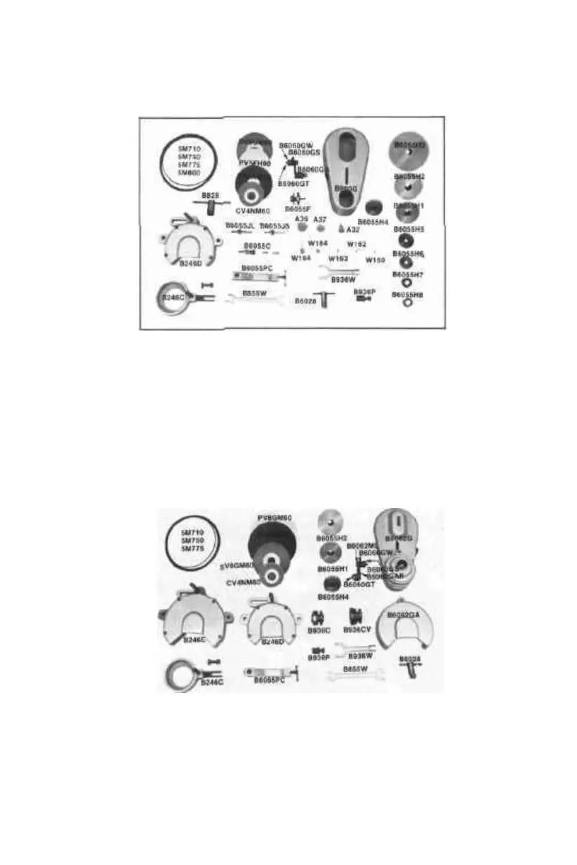 Wrench, B936C Collet, B936CV Collet and Pulley, B936P Wheel Puller. B936W Wrench, B6055H1