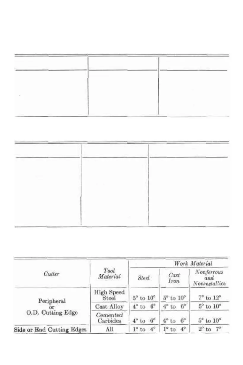 V. STANDARD CLEARANCE ANCLE SETTINGS FOR H.S.S. CUTTERS