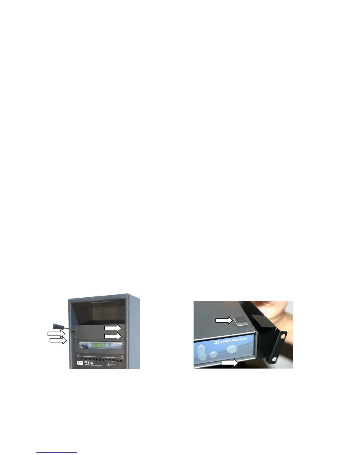 Fixez au récepteur HF les deux oreilles de rack livrées avec la PAS 100 (elles se trouvent dans