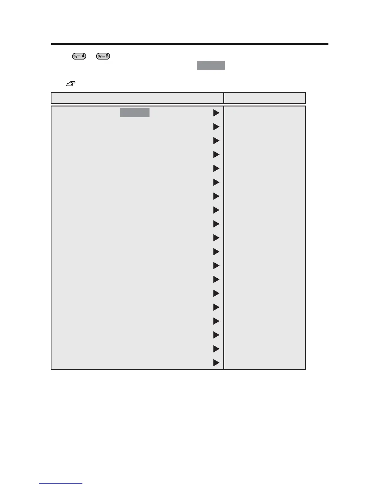 Consulte la "Lista de símbolos" para mostrar más símbolos en cada menú.