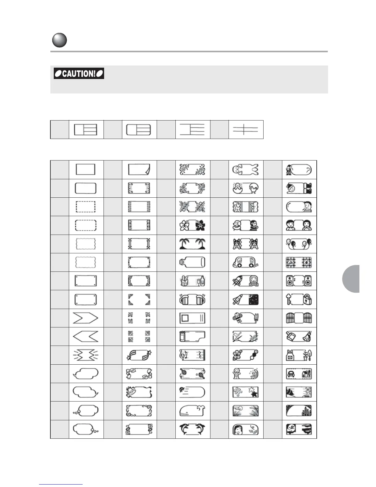 Frame images in the "Frame and Symbol List" may slightly differ from actual printout.