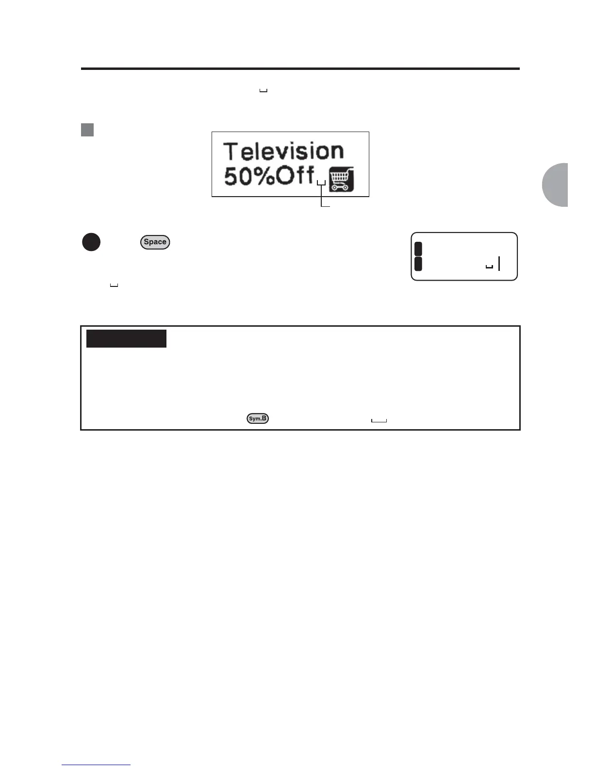 A space you enter is indicated by " ", and it will be a one-byte blank on the printed