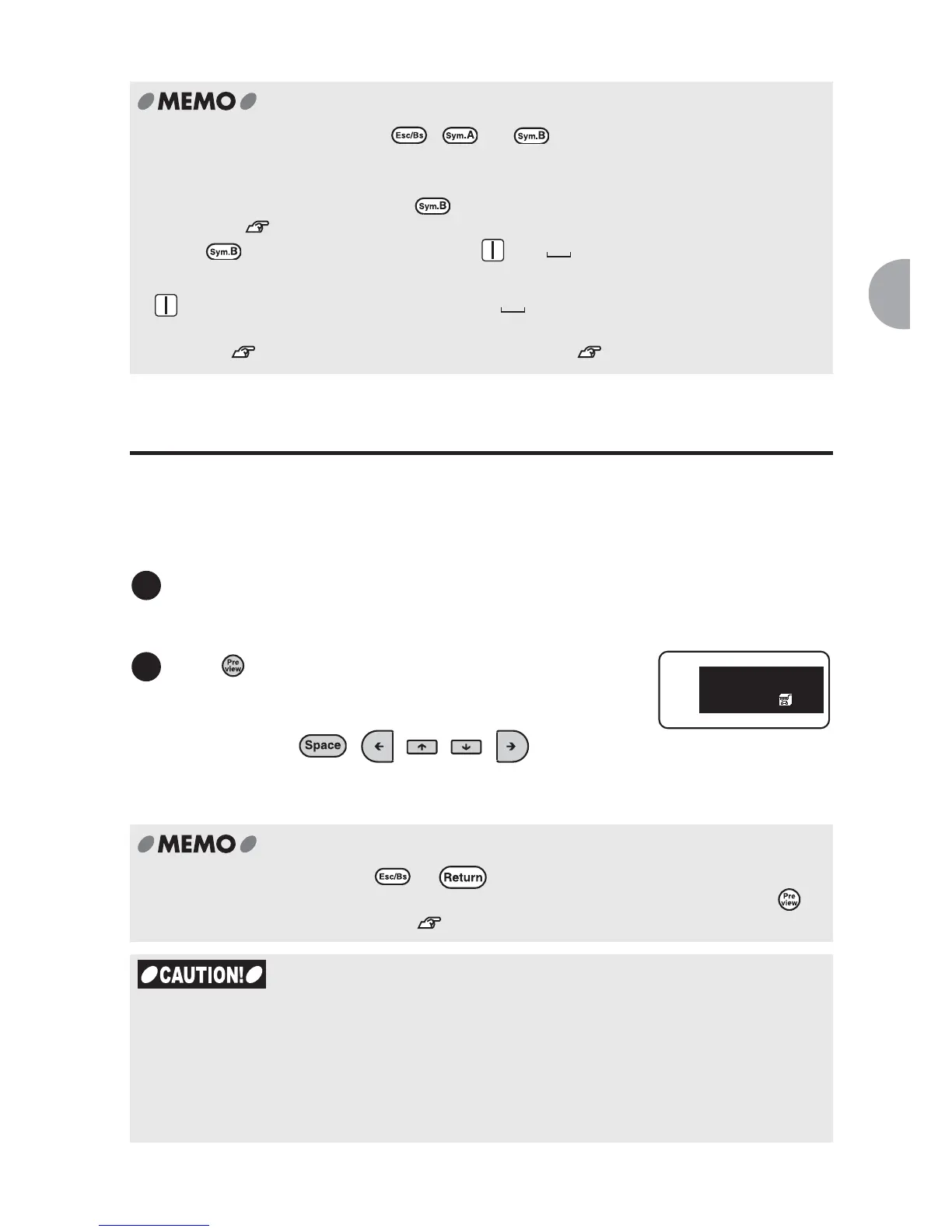 x Text entered in Cable print mode displayed differently from the actual layout. Press to