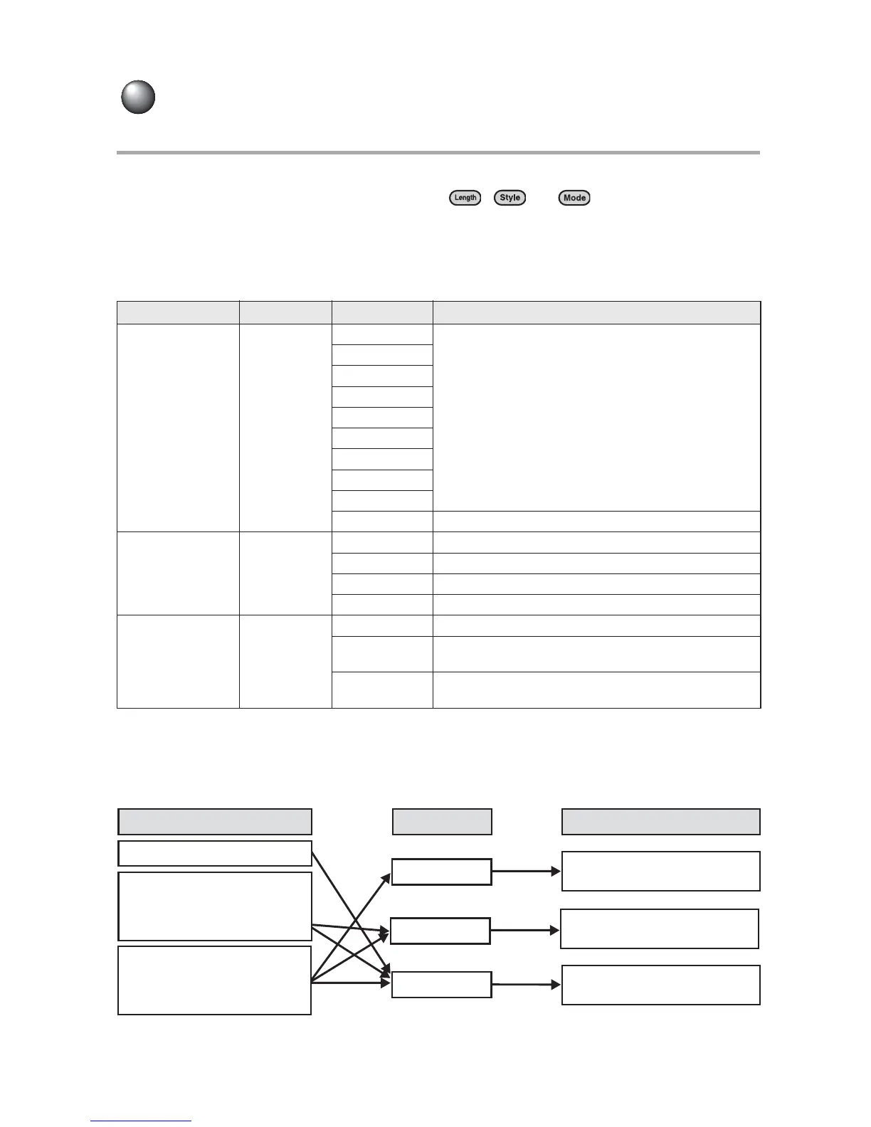 Depending on the specifiable effective area, functions are divided into Length/Style/Mode