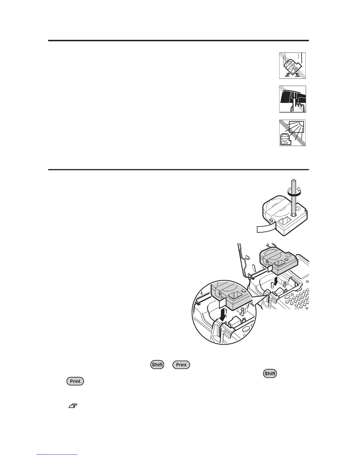 This may bend or break the ink ribbon and damage the tape cartridge.