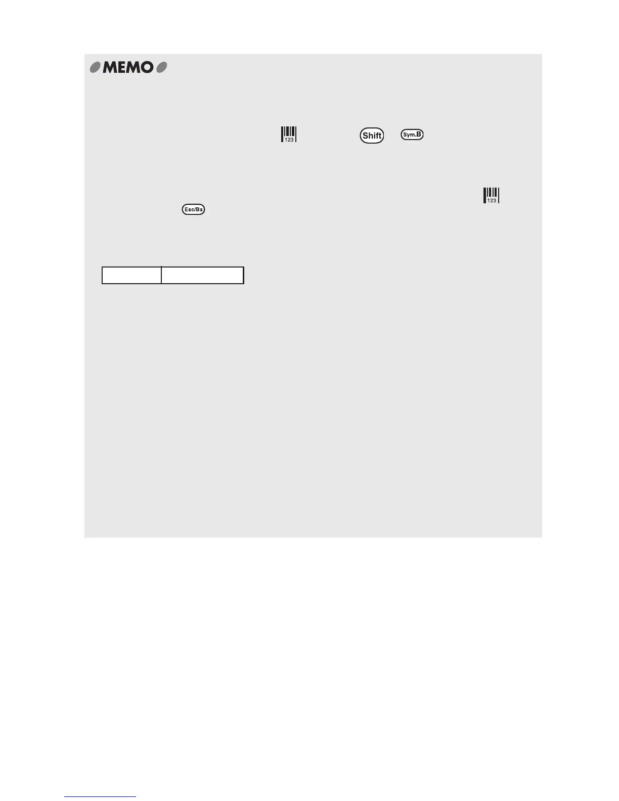 after (right side) the bar code mark " " and press + (= Bar Code). The