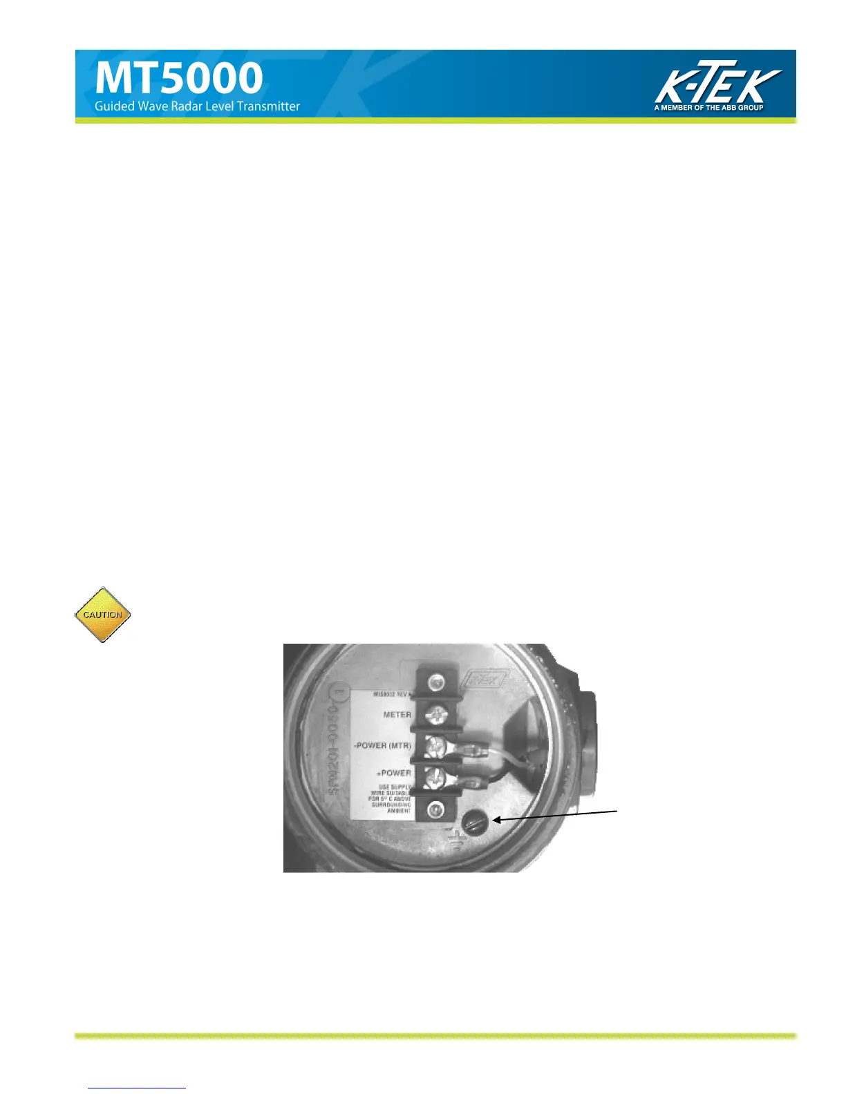 Electrical connection to the MT5000 should approach the transmitter head from below the conduit opening to provide