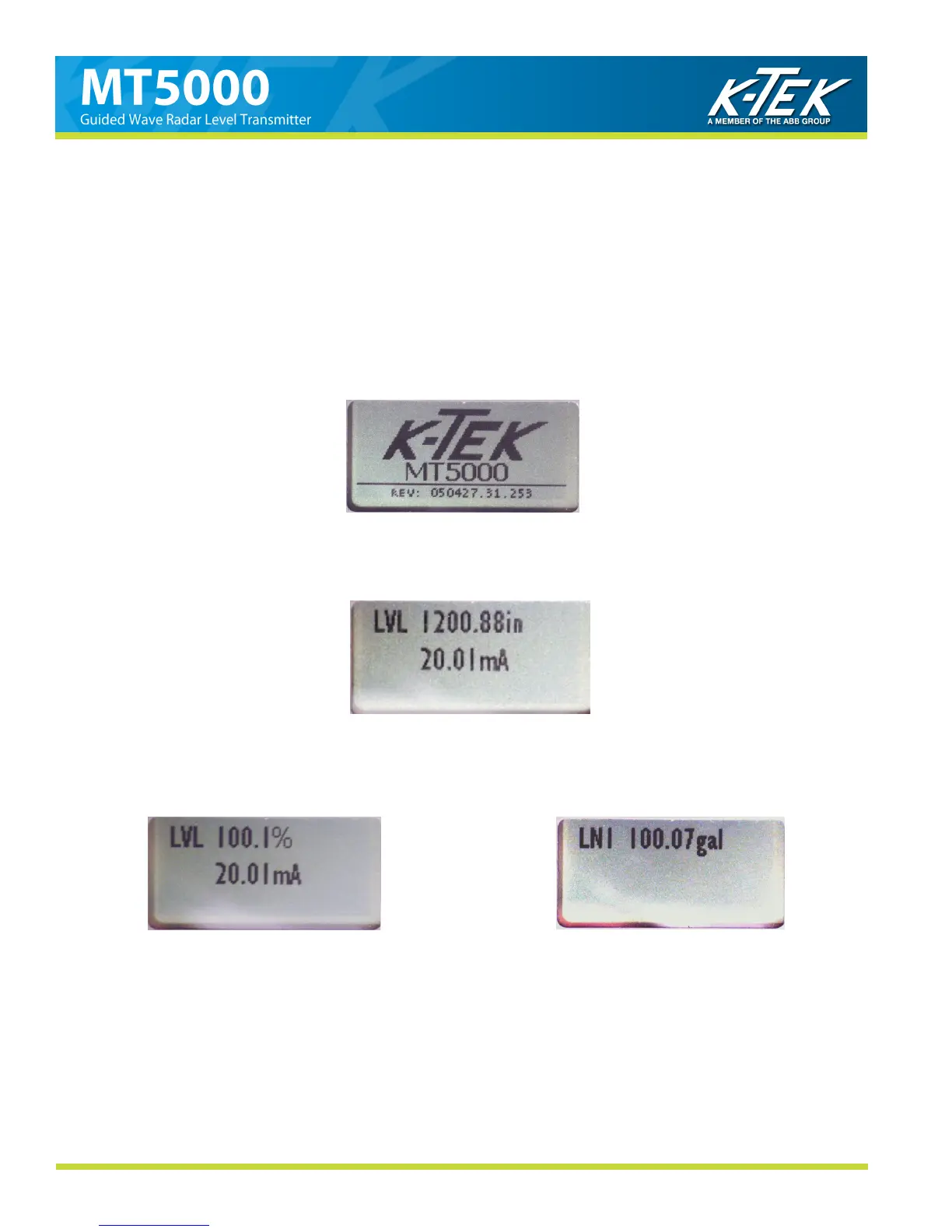 When power is applied to an MT5000 series transmitter, the display will light up with a title screen which shows the