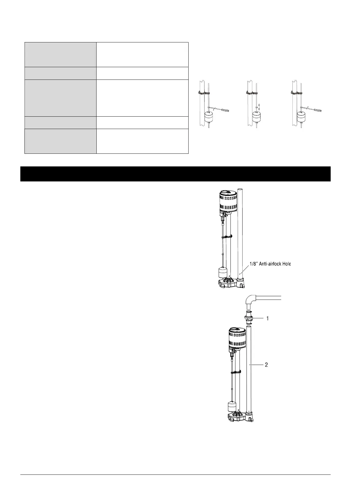 Ajustez la position marche et arrêt du flotteur uniquement