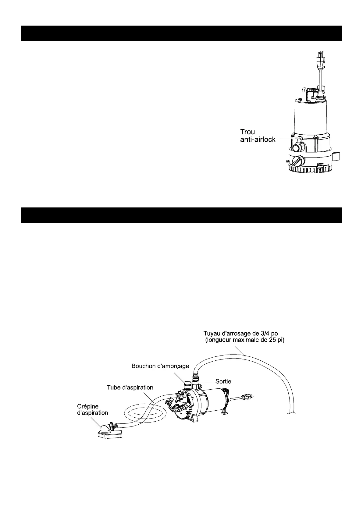 poches d’air et la pompe peut ensuite fonctionner adéquatement. Si des débris