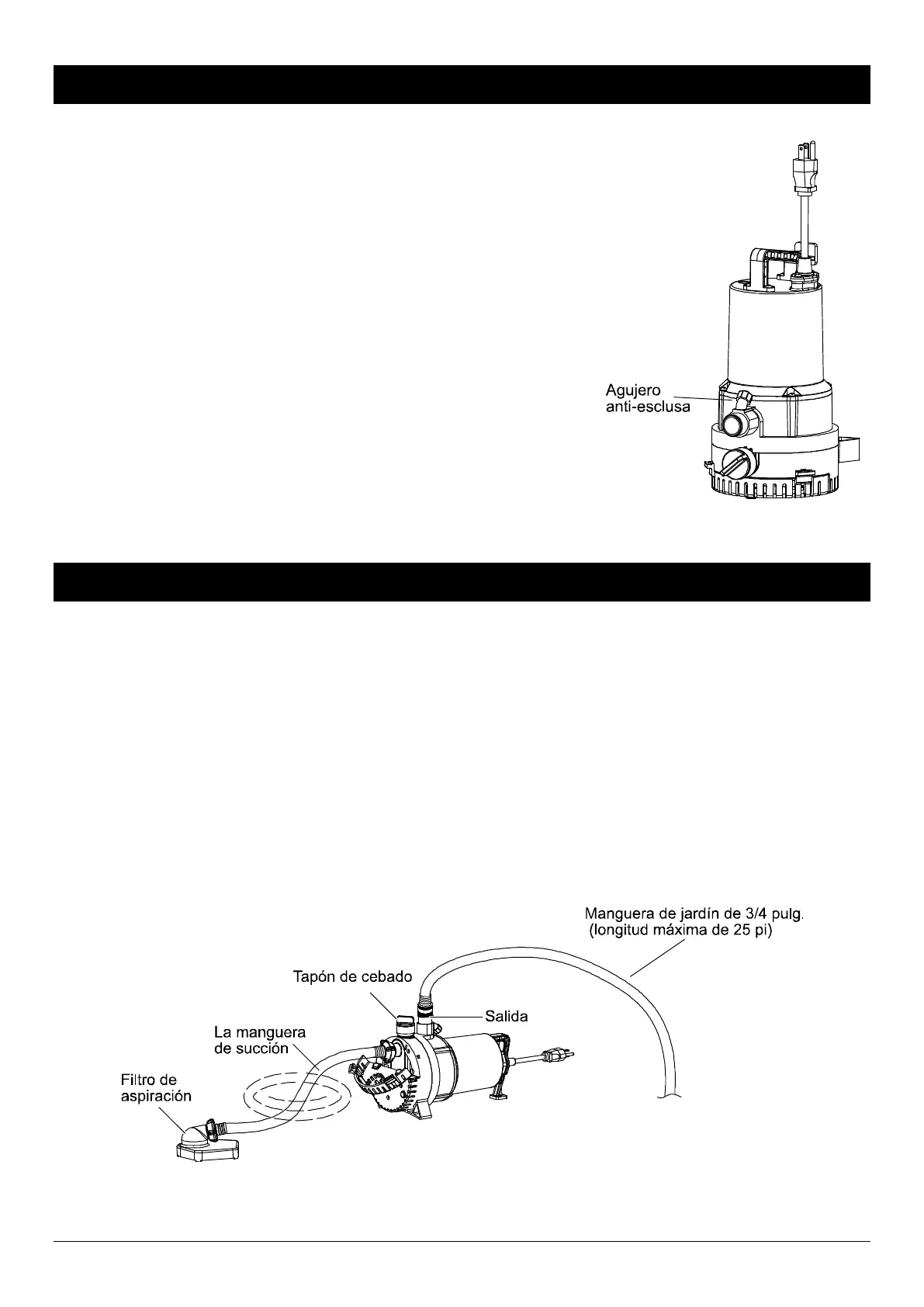 PELIGRO: Siempre use la manilla para levantar la bomba. Nunca use el cordón o el cable eléctrico para levantar la