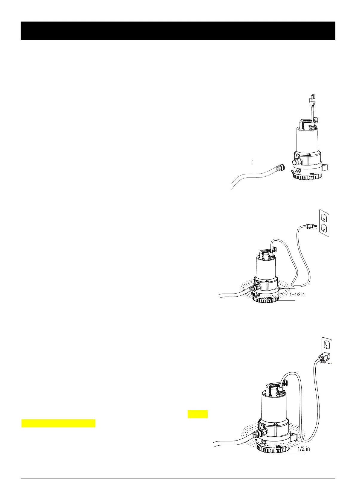 NOTE: After starting, the pump will lower the water level to 1/2 in. (12.7